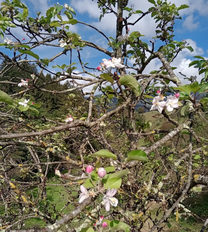 V Cerknem za praznični dan zastave ne visijo, zato pa jablana cvetijo.